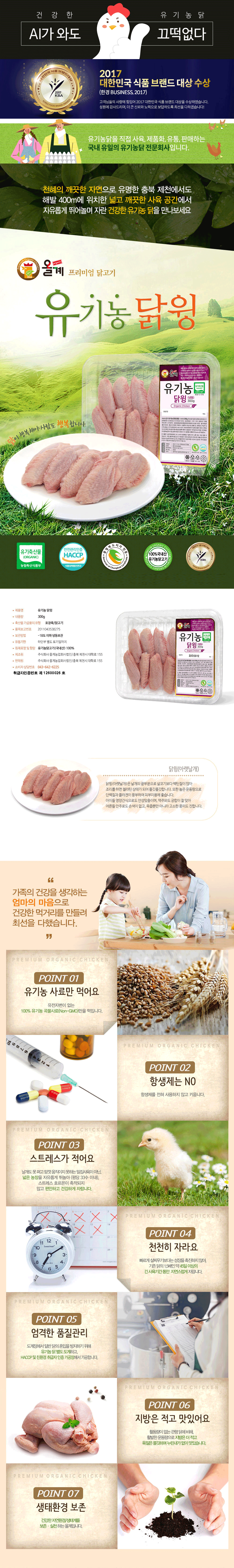 최다판매 신상품 (주) 올계 농업회사법인 올계 유기농 닭윙 300g