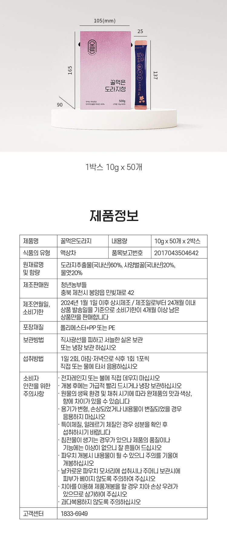 - 주문하신 제품의 판매자가 다른 경우 부분배송되며, 실제 배송 상황에 따라 1~2일 정도 차이가 발생할 수 있습니다.